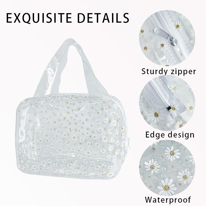 TotePrint Orang Daisy Pattern PVC Washing Cosmetic Bag Portable for Travel, Storage Cosmetics and Skin Care Products 10.24"x3.94"x7.48 (Orang D1114-6-B097-7582-16)