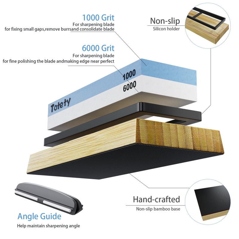 - Multi-functional whetstone: The Totety whetstone is versatile with two-sided grit 1000/6000, perfect for both sharpening and superfine finishing.