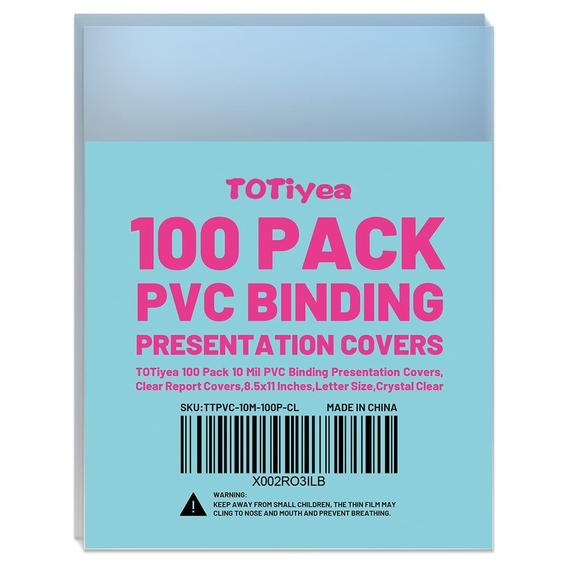 TOTiyea 100 Pack Binding Presentation Covers, Clear Binding Covers, Letter Size (10Mil (Clear))