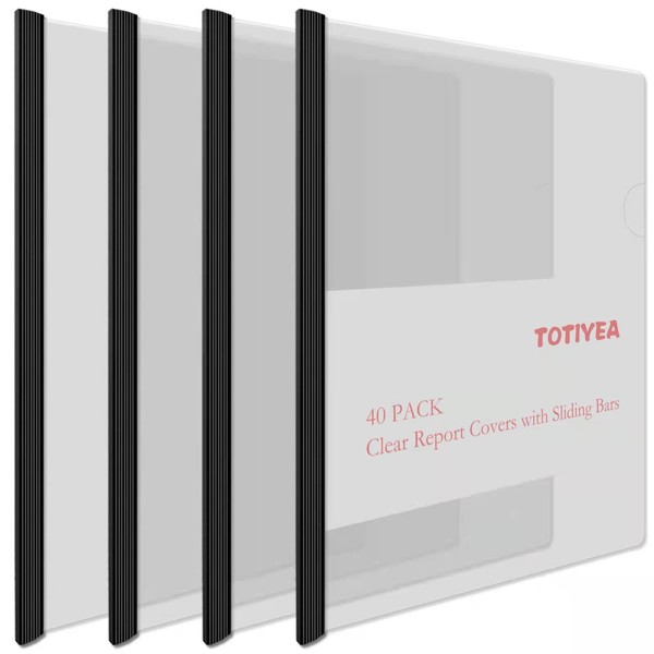 TOTiyea 40 Pcs Clear Report Covers with Sliding Bars, 9mm ( 40 Sheet Capacity ) Black Sliding Bar File Folder