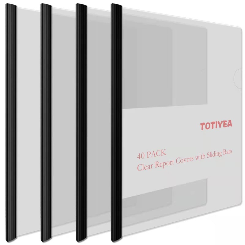 TOTiyea 40 Pcs Clear Report Covers with Sliding Bars, 9mm ( 40 Sheet Capacity...
