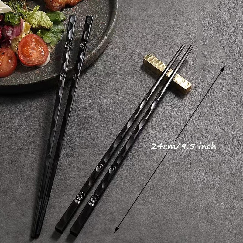 TOTKEN Chopsticks, 5 Pairs Reusable Black Dishwasher Safe Non-Slip Chopsticks with Gift Box (Vintage Style)