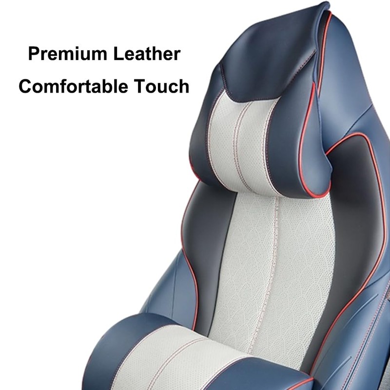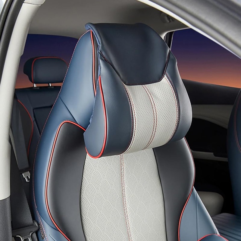 - 【3D Curve Design & Relieve Fatigue】This car blue and white headrest adopts ergonomic 3D curve design, which provides strong support for your neck, head and shoulders, relaxes your muscles, effectively relieves your neck fatigue, pain and numbness in the process of driving, makes you feel relaxed and comfortable, and improves your driving comfort.