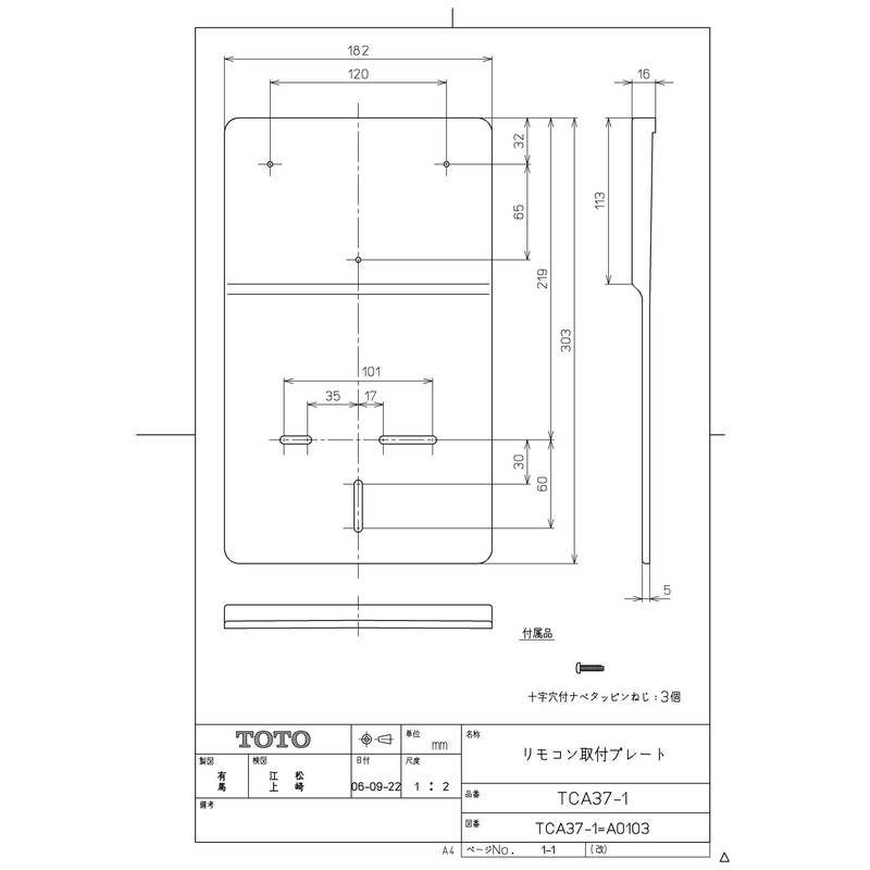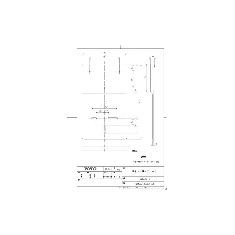 TOTO ウォシュレット用 リモコン取付プレート パステルアイボリー TCA37-1#SC1