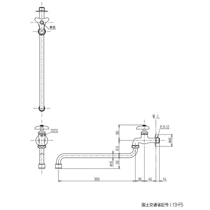 TOTO TK133AUN13C Single Faucet (Horizontal Faucet) Water Spout Pipe 11.8 inches (300 mm) For General Areas and Cold Areas