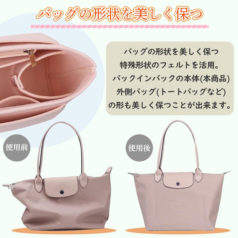 - Maintains the shape of the bag: The special shape of felt makes it possible to keep the shape of the bag-in-bag (this product), and outer bag (tote bag, etc.) beautiful