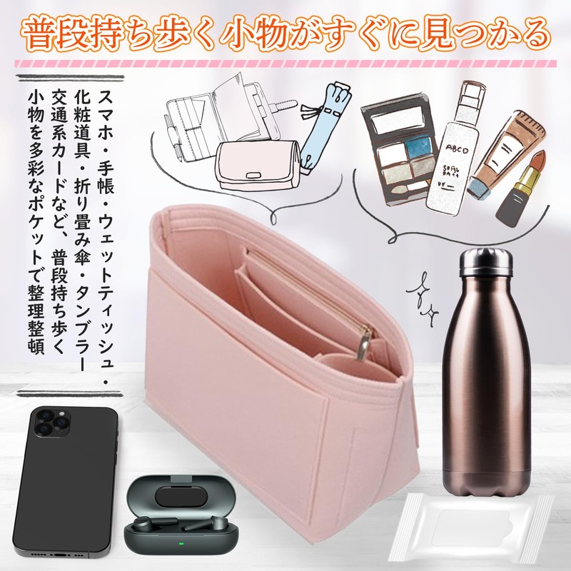 - (Easy to find small items that you can carry around) With a variety of pockets to organize your daily carrying, such as smartphones, notebooks, wipes, cosmetics, folding umbrellas, traffic IC cards, tumblers, etc. ※There may be cases that may not fit depending on the size and volume. Please check the size of the bag-in-bag