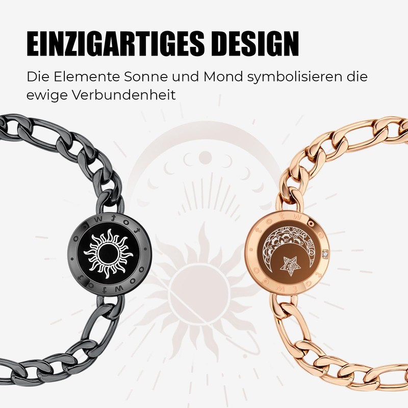 Totwoo Couple’s Bracelet, Couple Gifts, Partner Bracelets with Touch, Relationship Gift for Long-Distances Couple, Love Gifts, Vibration and Light-Up Bluetooth Pairing Jewellery, Sun and Moon, Alloy