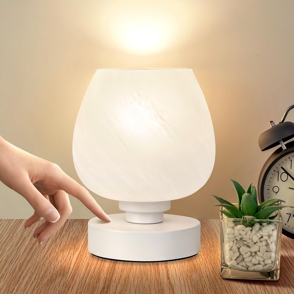 Touch Bedside Table Lamp - Modern Small Lamp for Bedroom Nightstand, 3 Way Dimmable Desk Lamps with White Opal Glass Shade, Night Light for Room Decor, Simple Design Gifts(Warm White Bulb Included)