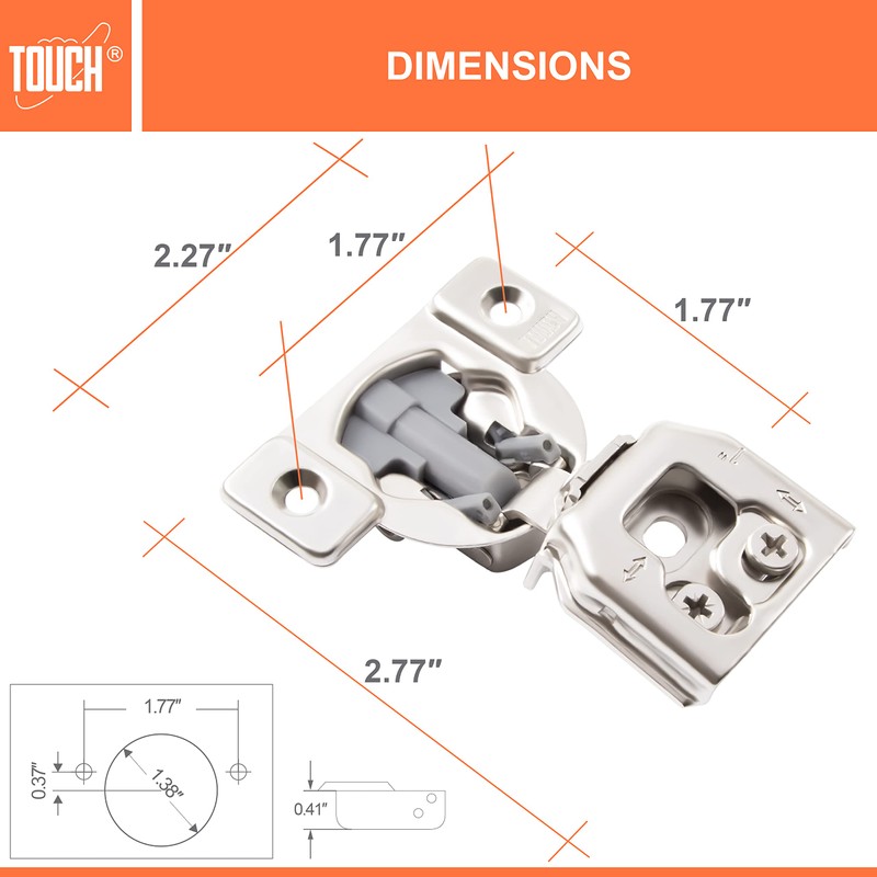 - Hinge Style: American concealed Face Frame 1" Overlay compact cabinet hinges Soft Close