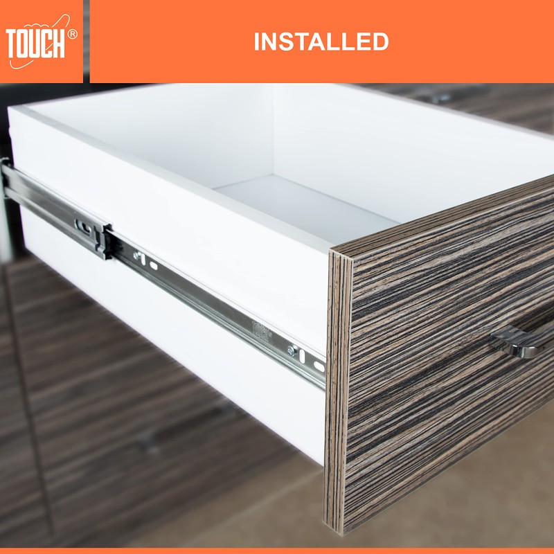 - Full Extension Design: 3-Fold Full Extension opening allows access for the entire drawer space. The Plastic lever on the third channel makes it easy to mount and remove the whole drawer unit.
