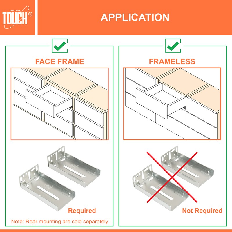 - Easy to Install: Our slides come with mounting screws and easy to follow instruction manuals. ** For face frame applications, rear mounting sockets are required (Sold separately)** You can contact us at any time if you have any question or suggestion, we will be more than happy to assist. Hope you have a happy shopping.