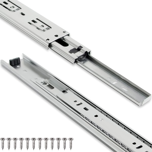 - Premium Quality: Our durable full extension drawer slides are manufactured with heavy-duty cold-rolled steel. Its high-grade Zinc plating prevents rust and corrosion. The Solid ball bearings provide smooth and silent movement with an Auto locking feature that keeps your drawer from falling off the track.