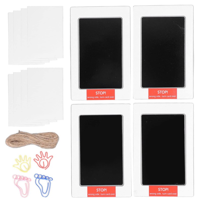 Touch Ink Pad for Baby Handprints and Footprints, Large Inkless Pet Dog Stamp Black Print Kit with 4 Ink Pads and 8 Imprint Cards, Clean Touch Ink Pad Doesn’t Touch Skin