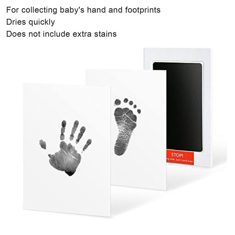 - 【BABY FRIENDLY】This baby footprint kit no mess at all and keep baby's skin clean. Our clean touch ink pads use a zero ink imprinting method to allow beautiful stamping of your baby’s hands and feet on art cards, memory book journals and other paper-based baby keepsakes.