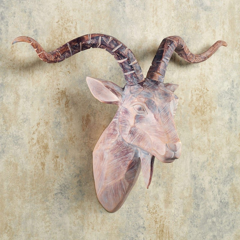 - Bring the trophy of an African safari home to your walls without harm to any animal with the Antelope Head Wall Art. This resin wall accent features a realistic-looking head of an antelope finished in weathered beige with brown horns. Antelope head wall art measures 21"Wx8"Dx14"H. Eye-catching addition to your safari decorating theme Perfect for decorators with a sense of adventure.