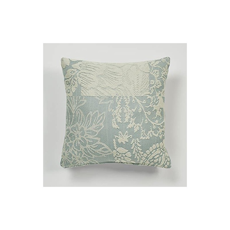 Touch of Class Reversible Vintage Floral Paisley Medallion Maisonette Ivory Spa Blue Tailored Pillow Tailored 18 Inch Square