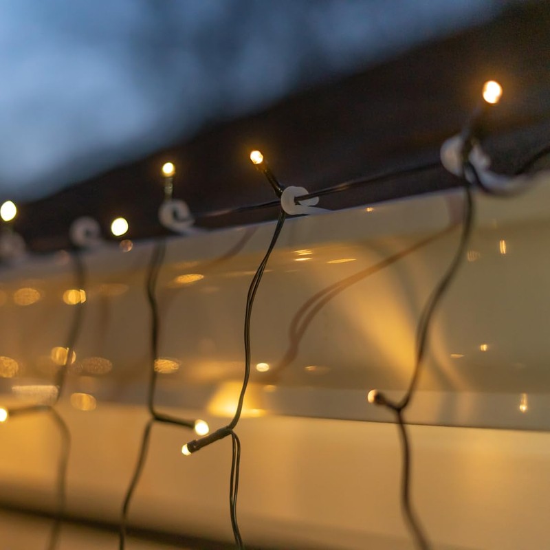 Decorate your home, yard, or outdoor living area with 110-LED Outdoor Solar Curtain String Light by Touch Of ECO. Measuring over 14 feet long and featuring 22 strands of LEDs, these solar curtain lights provide up to eight hours of light each night! With the built-in light sensor and upgraded solar panel, the DROPLITE will turn on automatically each night and off each morning to charge. The solar panel features two mounting options so it can either be clipped onto gutters or tree branches, or secured into the ground with the grounding stake. Plus you can choose between two light settings: flashing or steady! Add beautiful year-round decorative lighting to your home and outdoor living area without adding to your electric bill.