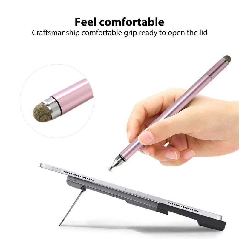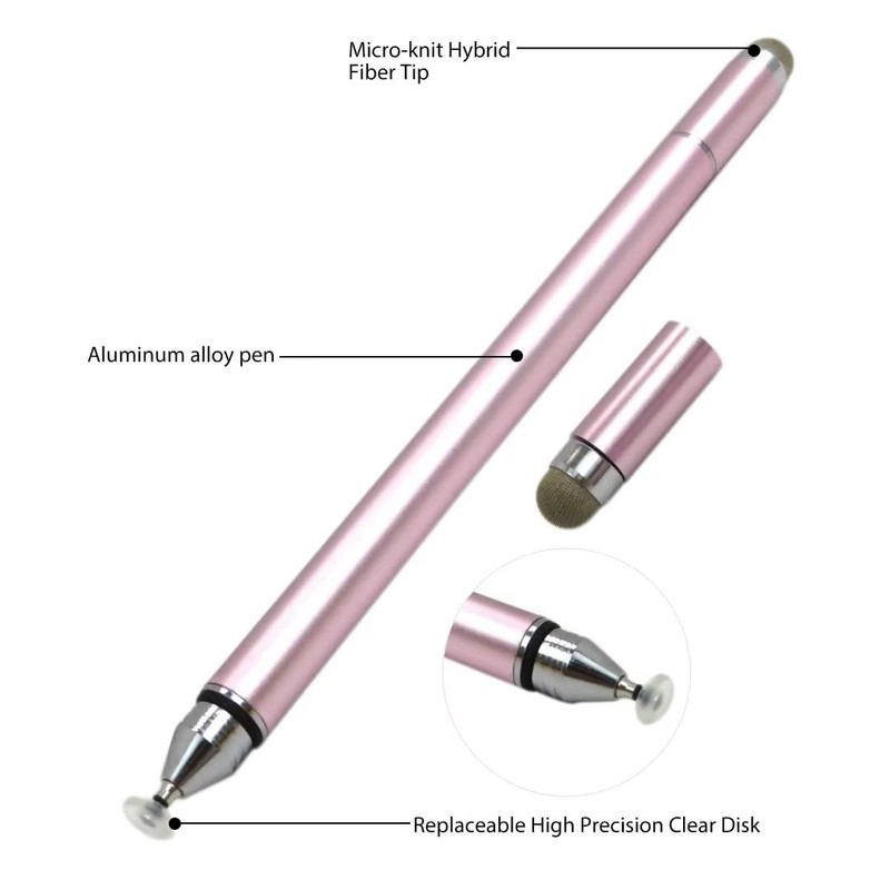 • ♦ Precise Point Disc Stylus - Nicely weighted aluminum barrels with two conductive fiber on one end and two clear discs under a screw cap at the other end. Provides a smooth pen-like writing experience for your touch screen tablets and smartphones.