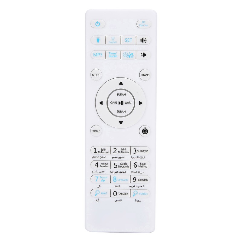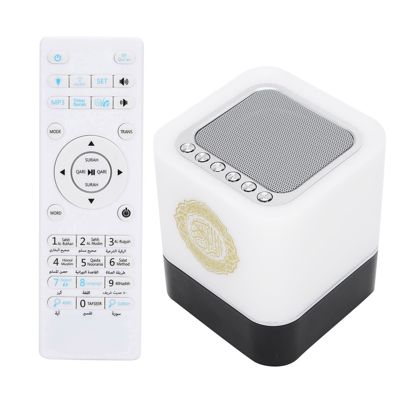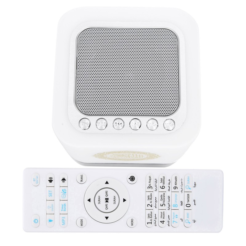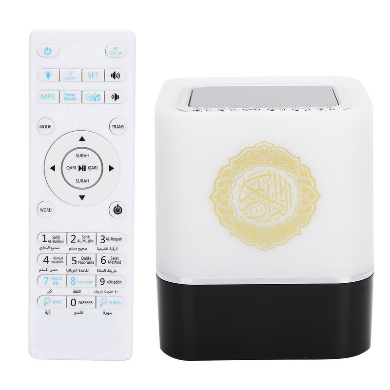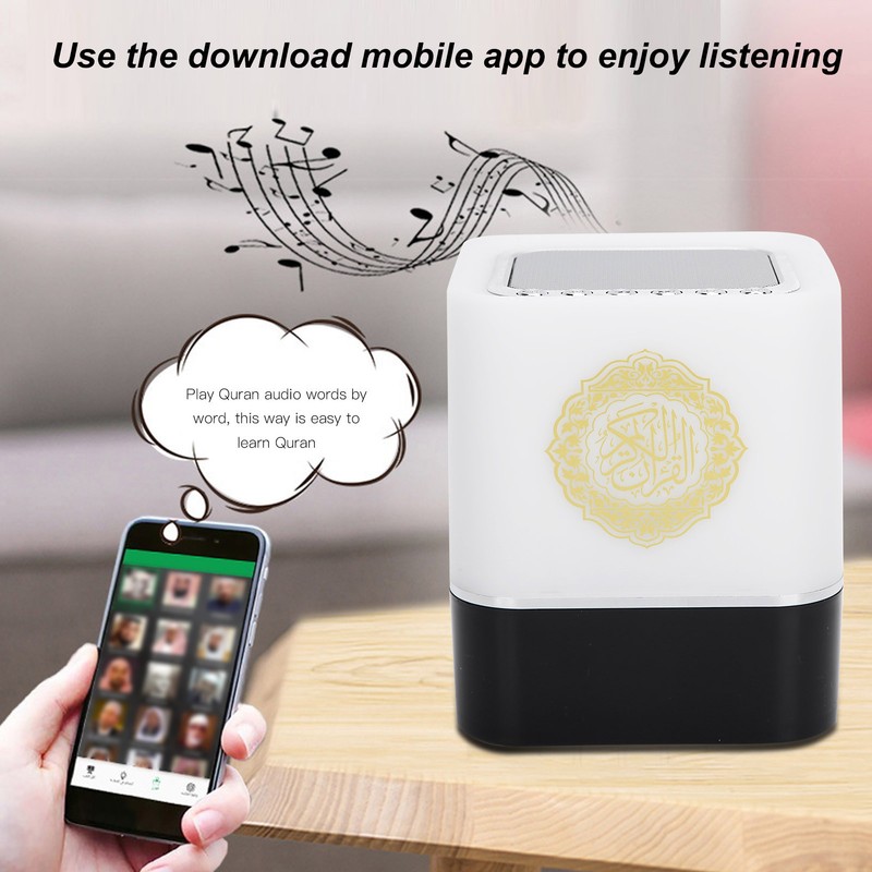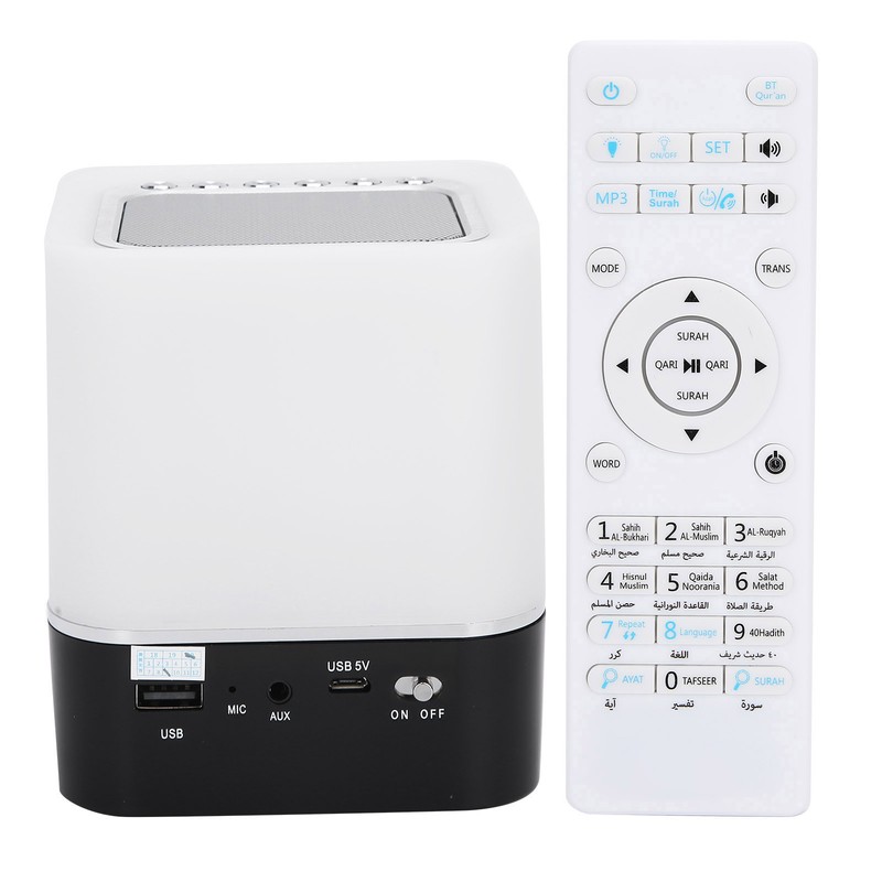 1、Use the remote control to control the Quran speakers, or use the downloaded mobile app to enjoy listening. 2、This speaker supports any audio MP3 files, equipped with high-definition speakers, perfect sound quality, beautiful sound. 3、The touch speaker plays Quran audio words by word, and it is easy to learn Quran in this way. 4、Play Quran translation and choose your local language to understand what Quran means. 5、This speaker can support 18 readers and 14 national language translations to meet your needs.