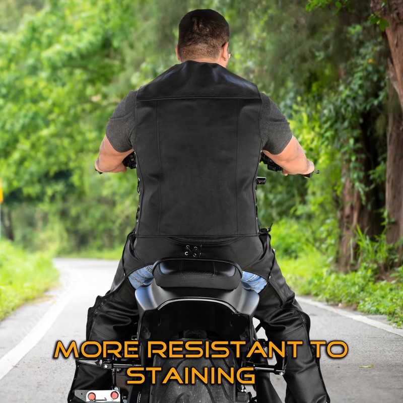 - Adjustable side laces on motorcycle leather vest to provide you more room while sitting long hours on bike for long rides.
