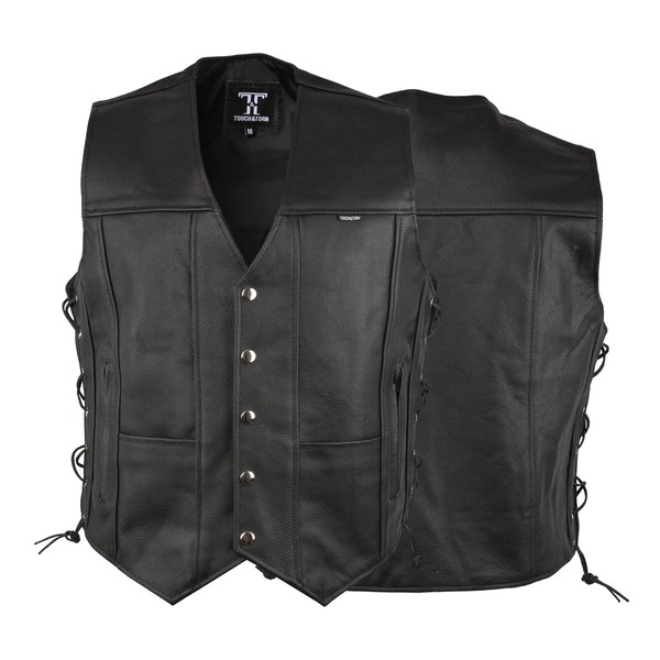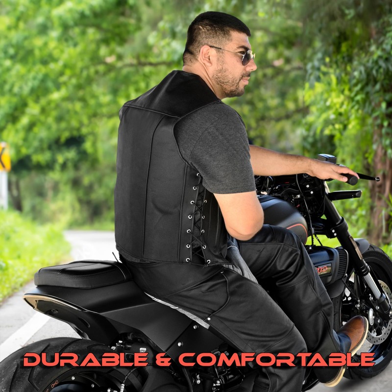 Touch&Torn Motorcycle Leather Vest for Men With Concealed Pocket Adjustable Laces Biker Riders Leather Vest
