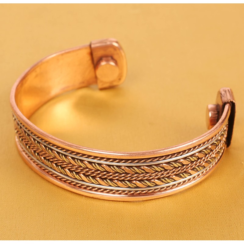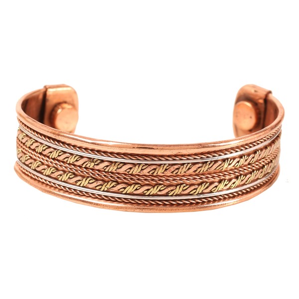 Touchstone Copper Magnetic Hand Forged with Solid and High Strength Tibetan Minimalist Elegance Bracelet in Pure Copper with Fascinating Pattern in Three Tones., Copper