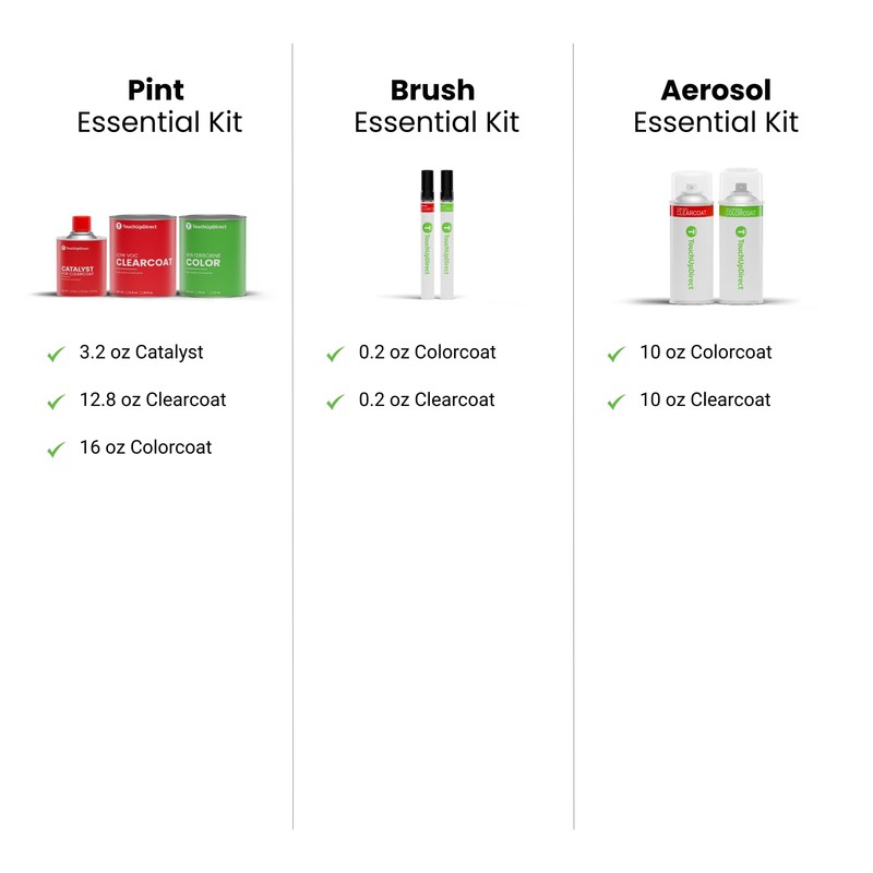 - The Brush essential scratch repair kit includes: one Colorcoat touch up brush perfectly matched to your vehicle's color and one Clearcoat touch up brush for the final protective finish. The Brush provides sufficient touch up paint to cover a minimum of 10 square inches. This touch up paint brush is prepared for immediate use.