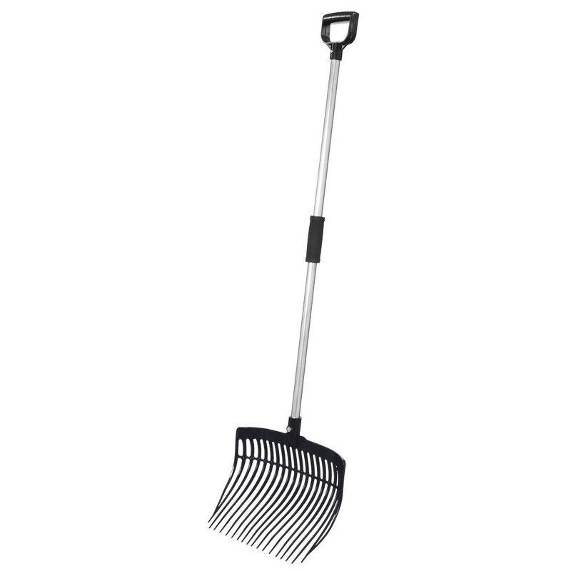 Tough-1 Pro Pick Rounded Stall Fork Holds 20% more than standard forks! Ultra lightweight and easy to use. Super strong 16" reinforced rounded head that handles a large amount of bedding, making your job much faster and easier. Head is shaped correctly for less back strain. Just scoop the stall and shake or gently tap the bottom. The shavings will fall out and the manure stays on the fork head. Features: Holds 20% more than standard forks Ultra lightweight Designed for less strain on your back