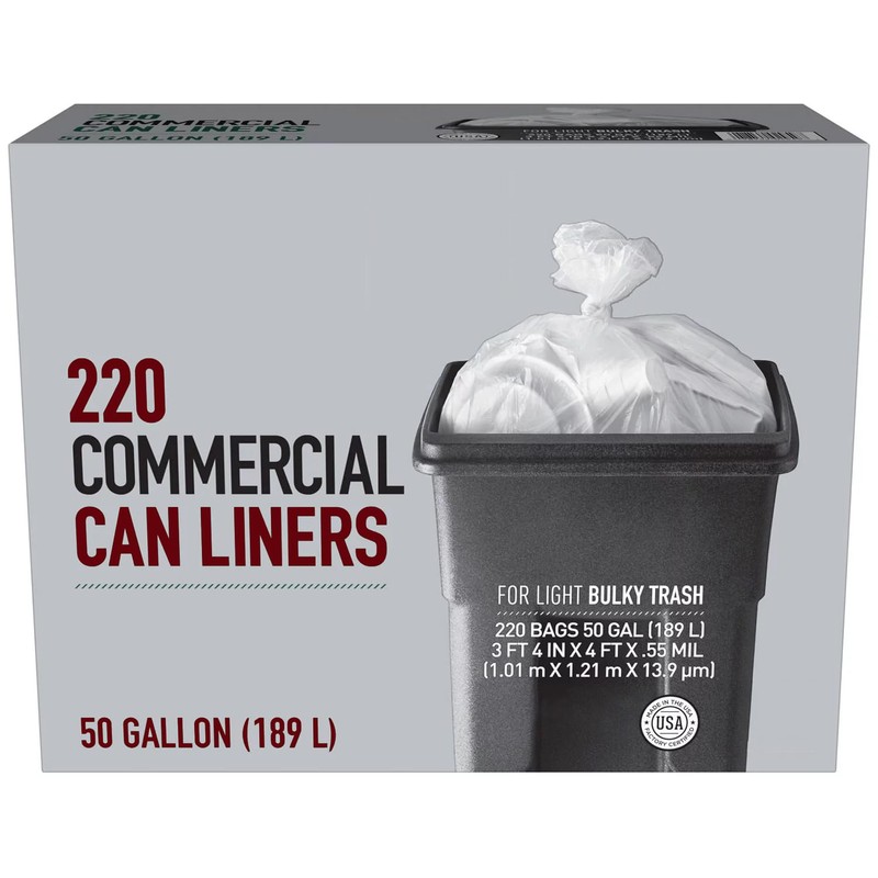 50-Gallon Commercial Can Liners makes removing lightweight and bulky garbage more manageable. These clear garbage bags are handy at home and for your business.