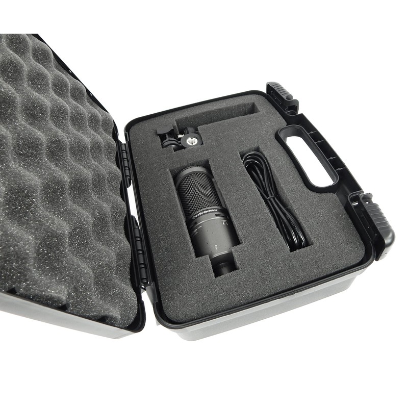 TOUGH Cardioid Condenser Microphone Hard Case with Dense Foam for Audio-Technica AT2020 / AT2020USB / ATR2500-USB / AT2035 Studio and USB Microphones - Fits Device and Accessories