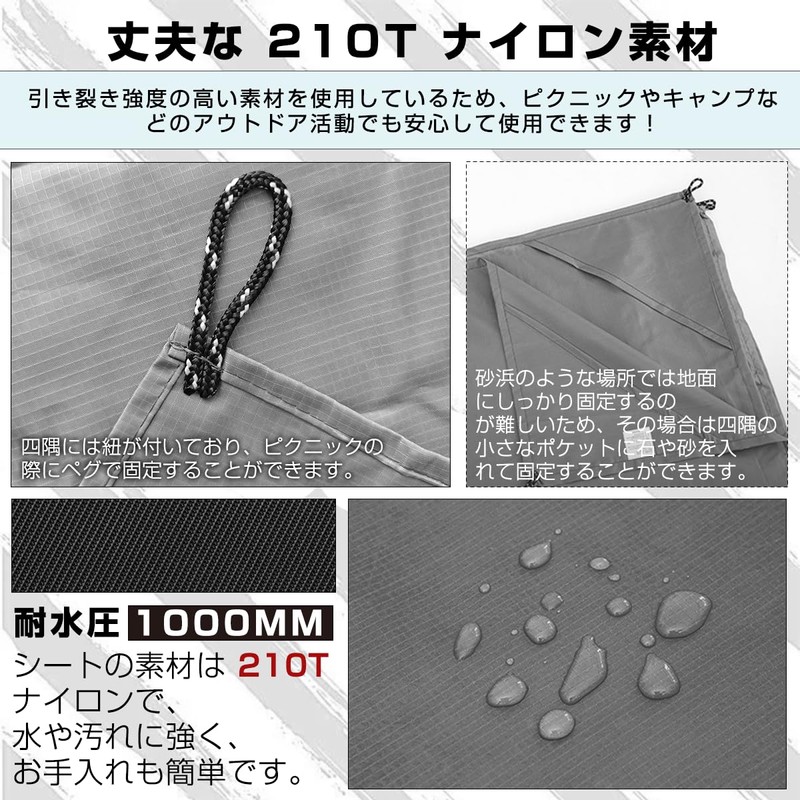 - (High Quality Material) TOUKAWA outdoor leisure sheet is made of 210T nylon for a balance of strength and durability. In addition, the high quality material has a water pressure resistance of 1000MM. Water and stain resistant and easy to clean!