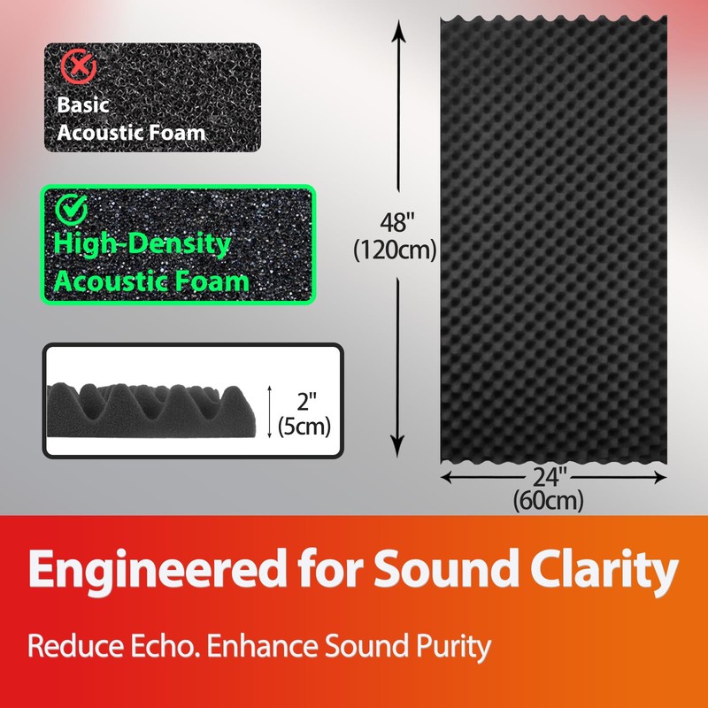 • 【Professional sound absorption】High-density egg crate foam reduces echoes, reverb and noise. Ideal for studios, home theaters & offices. It absorbs waves to eliminate flutter echoes & standing waves, creating a professional acoustic environment.