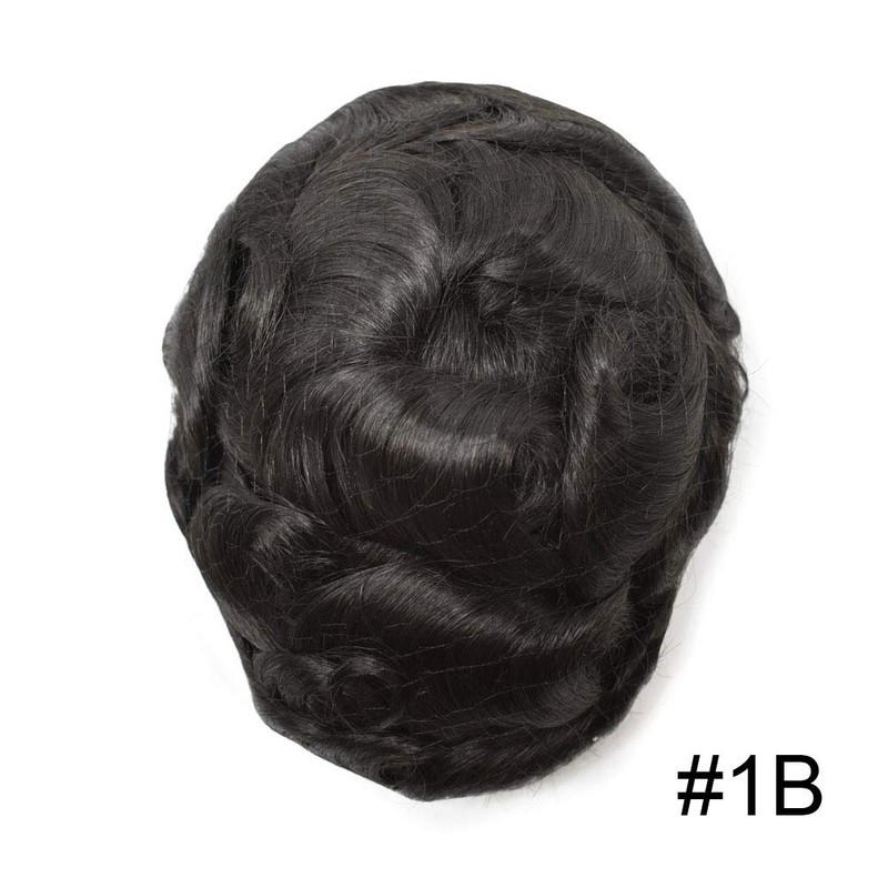 Toupee for men Hair Replacement System European Men Hairpiece 8X10 Full Poly Mens Toupee Durable Thin PU 0.1-0.12mm Male Prothesis Hair Unit 1B# OFF BLACK,8X10'' 120% Medium Light to Medium Density