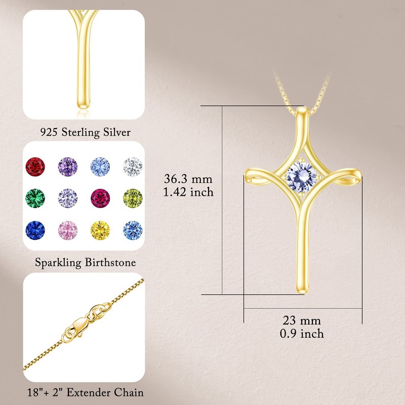 - ✞ Cross Birthstone Necklace for Women 💕 This elegant 925 sterling silver women's birthstone necklace is set with diamond and the pendant is made of s925 sterling silver with 14k gold plated , lead-free and hypoallergenic. Protect and safe for sensitive skin.Cross pendant size is :1.42 inch * 0.9 inch (36.3mm*23mm). The chain length is 18"+ 2"(inch),and with lobster claws, the chain becomes more delicate. It is lightweight and sits comfortably around the neck.
