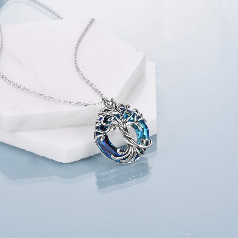 - ❤ STERLING SILVER CRYSTAL NECKLACE ❤ 100% unique original design, 100% sterling silver material. The tree of life necklace is designed with Celtic style. The surface of the silver tree of life pendant is treated with oxidation process, natural, retro, and well textured,Pendant with Blue Circle Crystal.