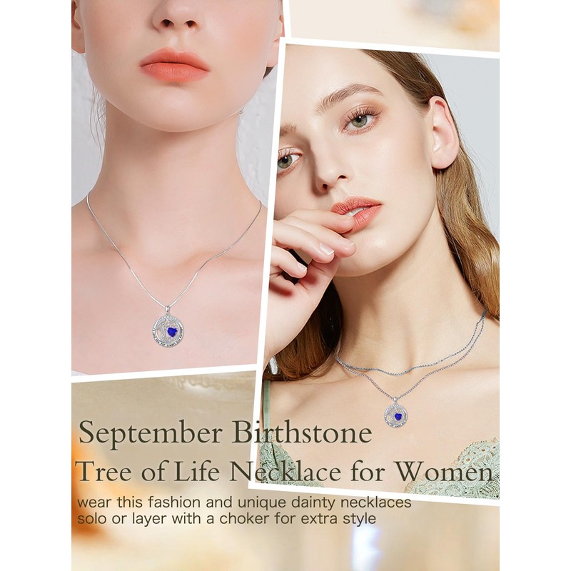 TOUPOP Sapphire September Birthstone Necklace for Women White Gold 925 Sterling Silver Tree of Life Pendant Necklaces Irish Celtic Birthday Christmas Jewelry for Wife Girlfriend