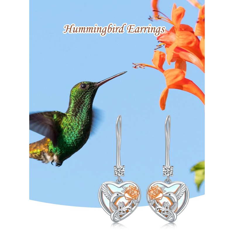 - ❤️Hummingbird Earrings❤️Hummingbird symbolizes healing, endurance, and wisdom, and is a messenger from heaven. The hummingbird earrings with rose flower design is very suitable for women who love nature and animal lover that enjoys hummingbird.
