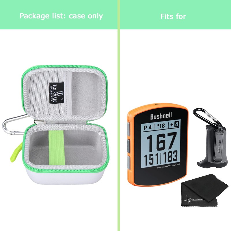 Tourmate Golf GPS Storage Case Compatible for Bushnell Phantom 2 GPS Rangefinder for BITE Magnetic Mount and GreenView with Wearable4U Ultimate 3 Golf Tools Bundle(ONLY CASE) (PU,White + Green)
