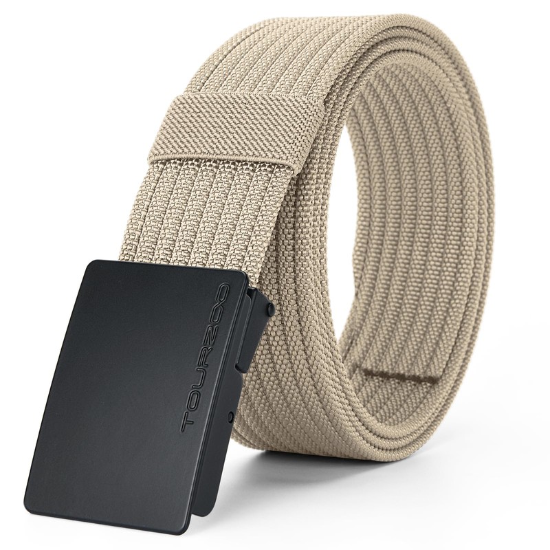 TOURZOO Nylon Military Tactical Belts for Men 1.5" No Holes Adjustable Webbing Canvas Belt for Hiking, Casual & Outdoor(Beige,42"-45" Waist Adjustable)