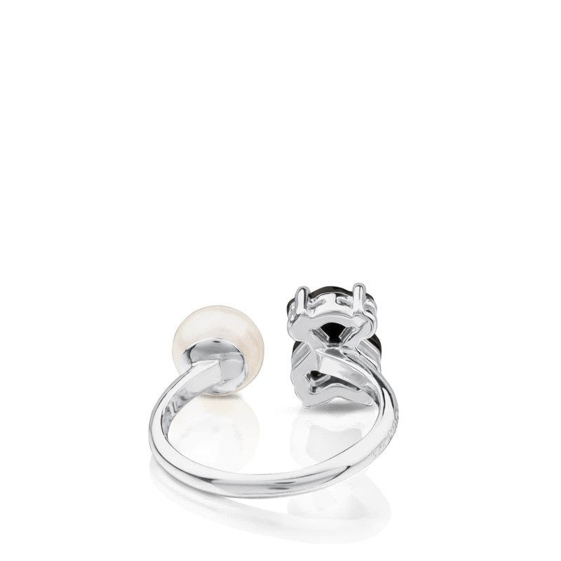 TOUS Anillo de Plata de Primera Ley para Mujer con Motivo de Osos Ónix 7,2x0,9 cm, Talla 6.5, Plata de Ley 925, Bonito y Versátil, Colección Erma