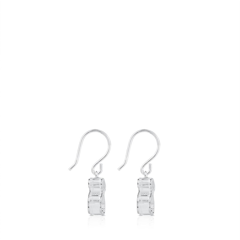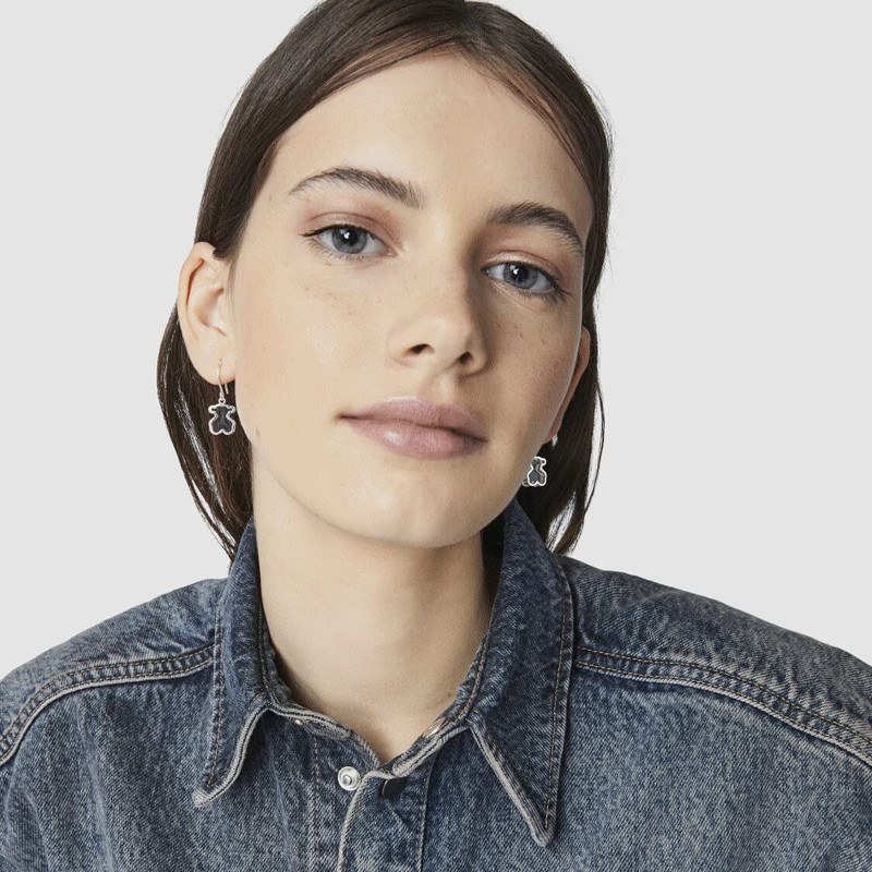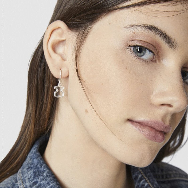TOUS Aretes de Plata de Primera Ley para Mujer con Cierre a Presión con Motivo Oso de 1.15 cm, Plata de Ley 925, Versátil e Icónica, Colección Galaxy
