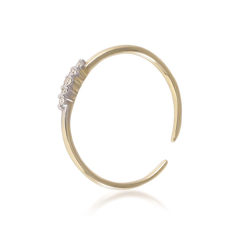 TOUSIATTAR Diamond Knuckle Ring 14k Rose White Yellow Real Gold - Bezel Set Diamonds Midi Ring - Dotted Texture (Yellow 5 Diamond Knuckle Ring)