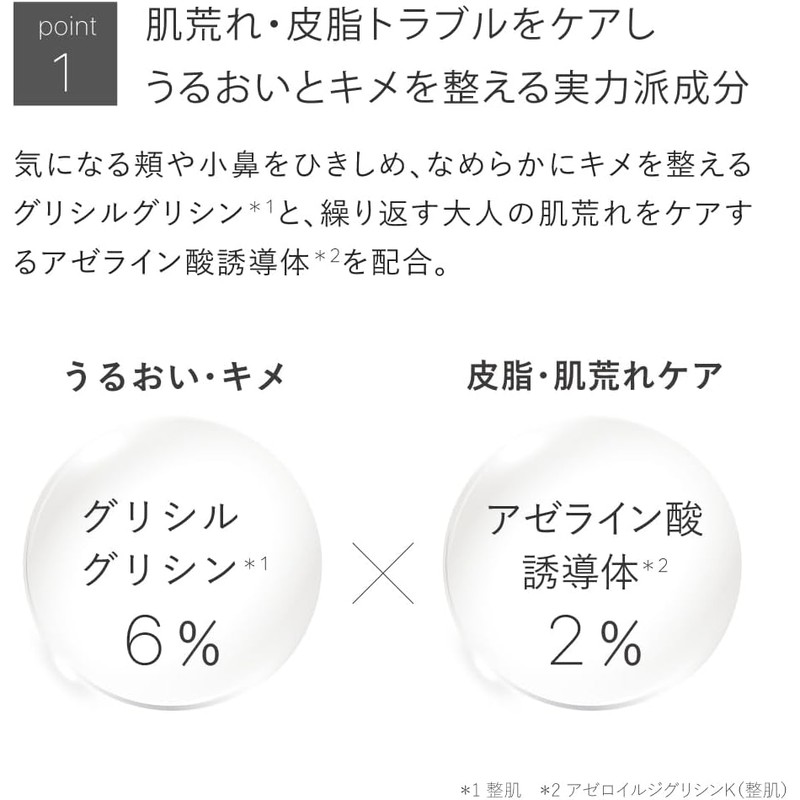 - (2% azeline acid derivative formula) This product is widely used in the world, and contains 2% of the derivative of azeline acid, which is a low-irritating ingredient found in grains. It leads to smooth skin without rough or stiffness. Also care for sebum problems. Recommended for those who are concerned about their shine or make-up in the evening, and men who are concerned about stickiness to their skin