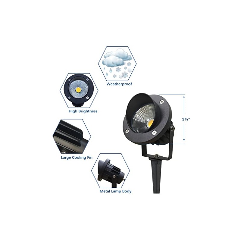 - 3 installation methods -- Metal stake/spike for in ground installation; Metal standing base (used as a uplight / accent light); Metal base for wall or roof mounted. Easy to use, 5ft cord with plug, Plug and play.