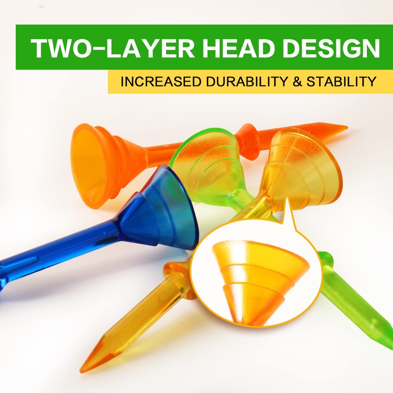 Compared with other golf tees with single-layer head design, the double-layer head increases durability and stability.