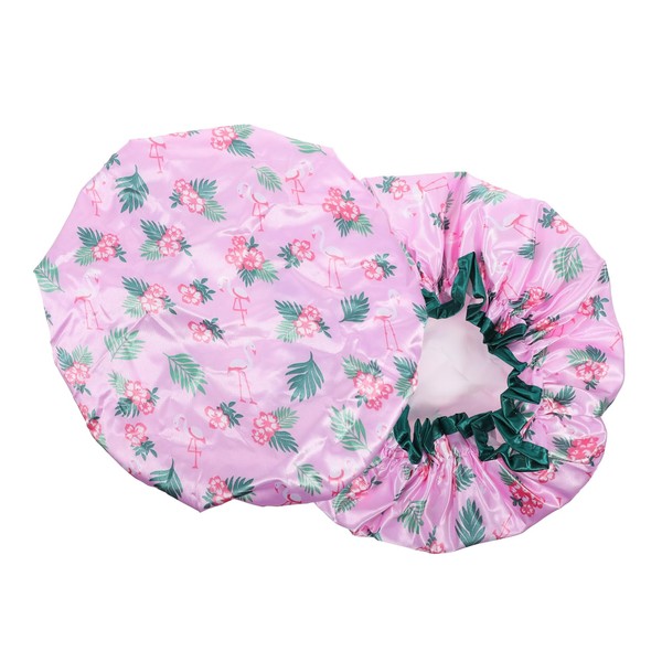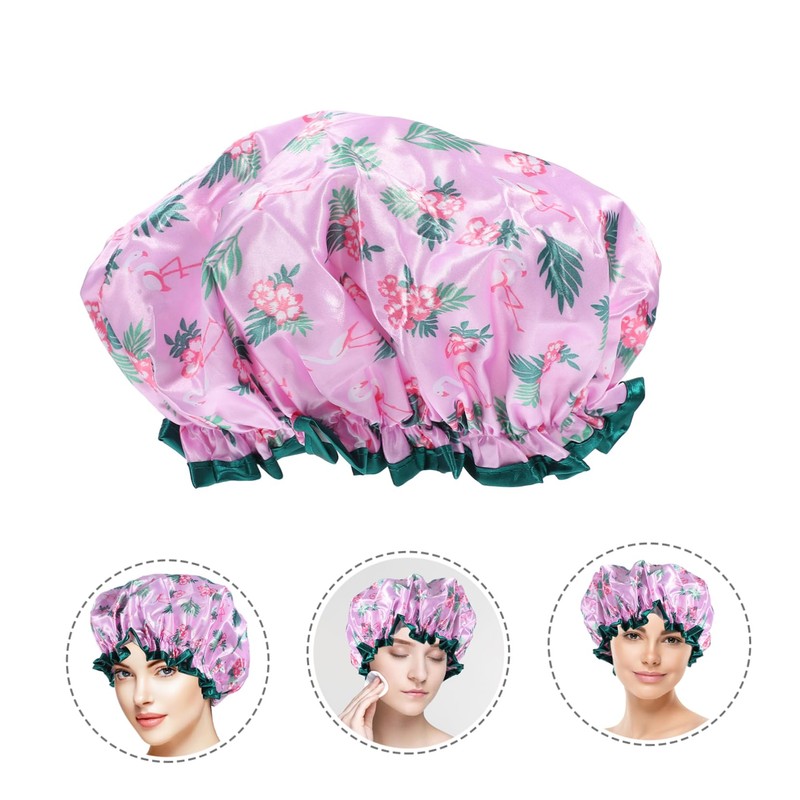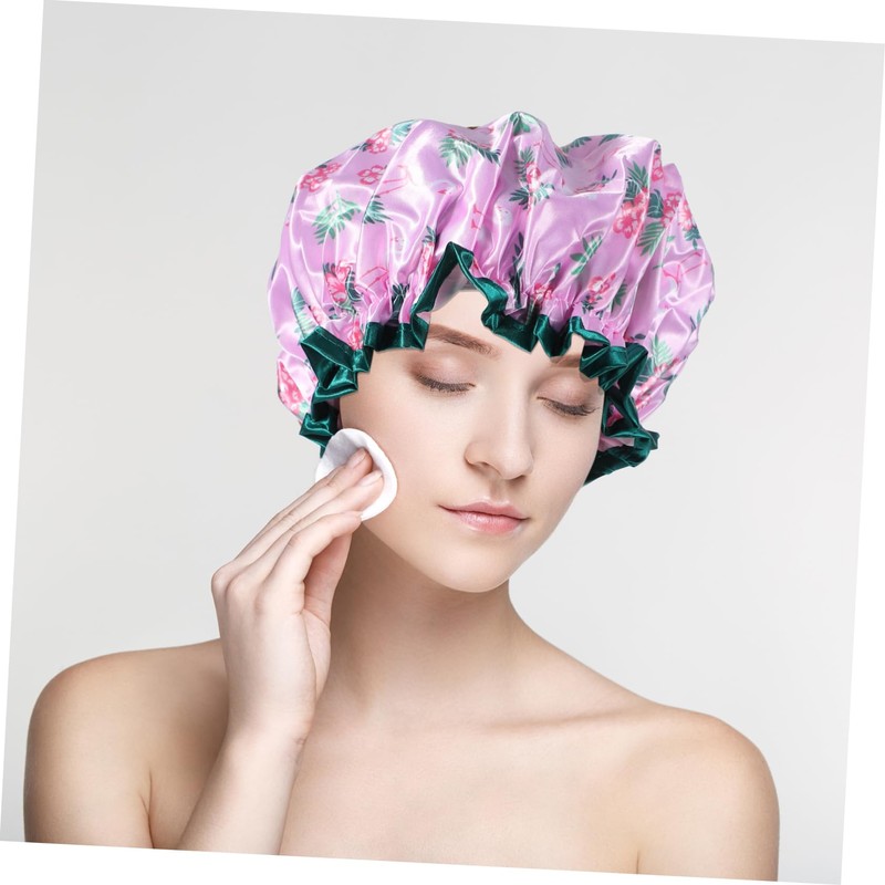 TOVINANNA 2pcs Double Layer Satin Shower Cap Bathing Cap Double Layer Shower Cap Printed Shower Cap Waterproof Shower Cap Flamingo Shower Cap Women Bathing Satin & Peva