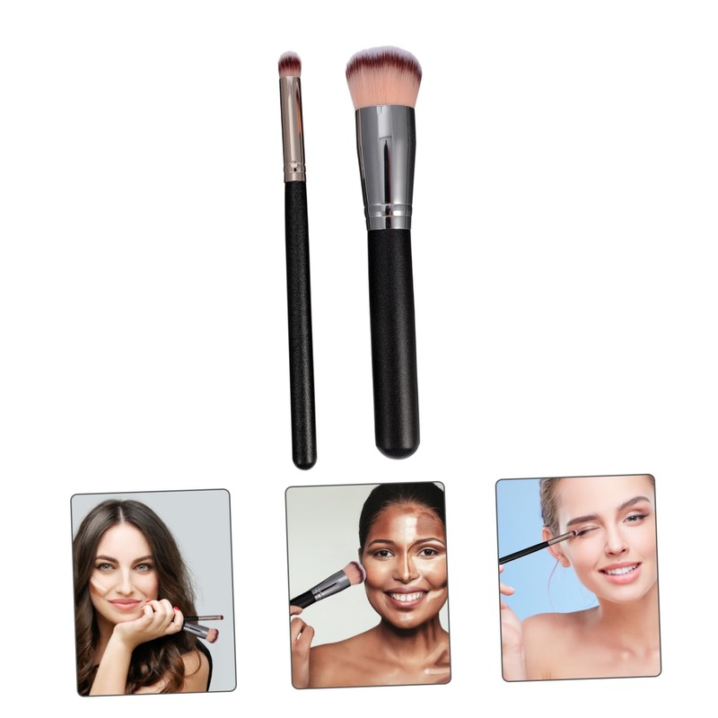 TOVINANNA 2pcs Synthetic Makeup Foundation Powder Brush Set for Self Tanning Concealing for Travel and Professional Use Soft Bristles for Application