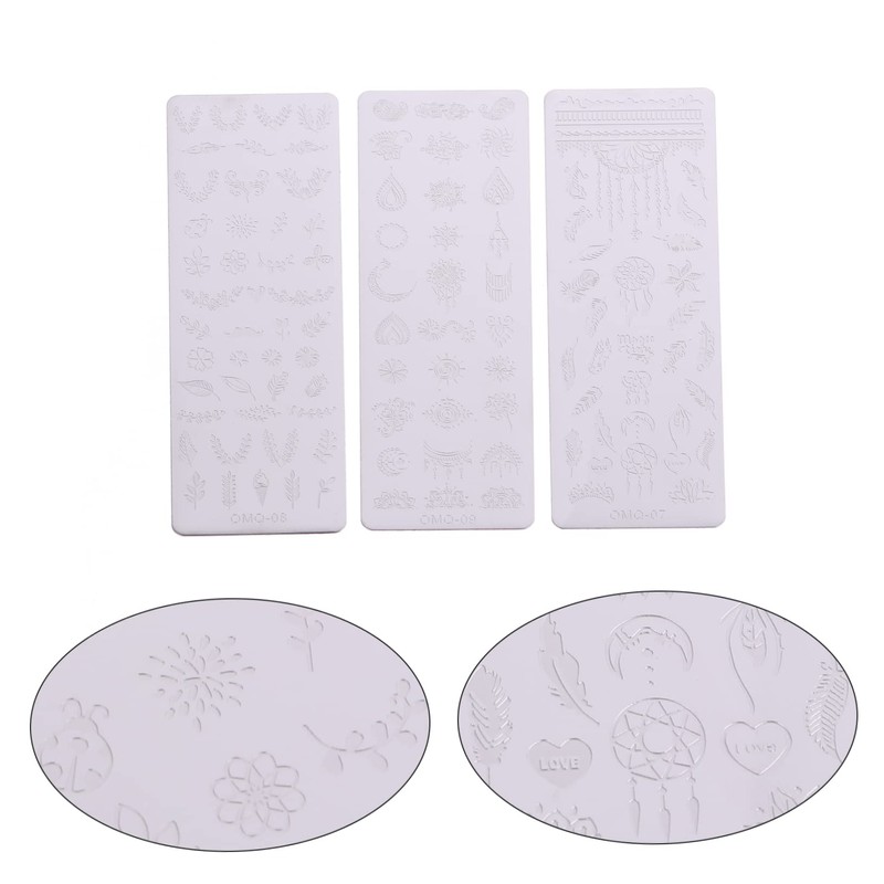 TOVINANNA 3pcs Nail Stamping Plates Template for DIY Nail Art Creative Design Sturdy Stainless Steel Easy to Use Patterns