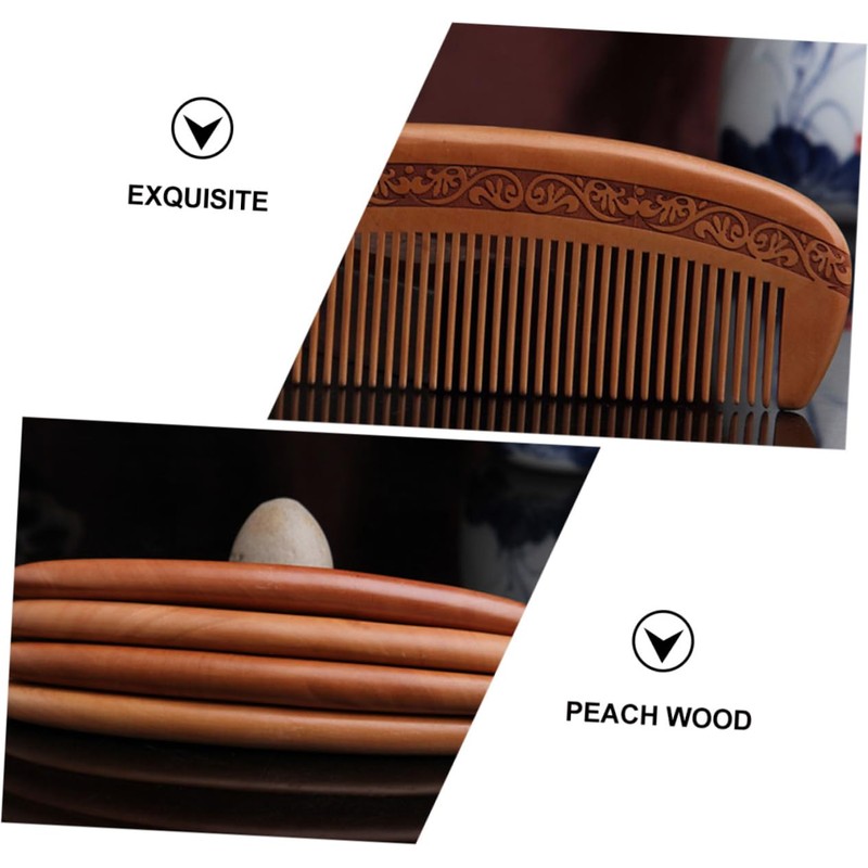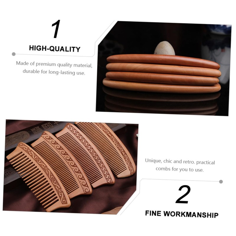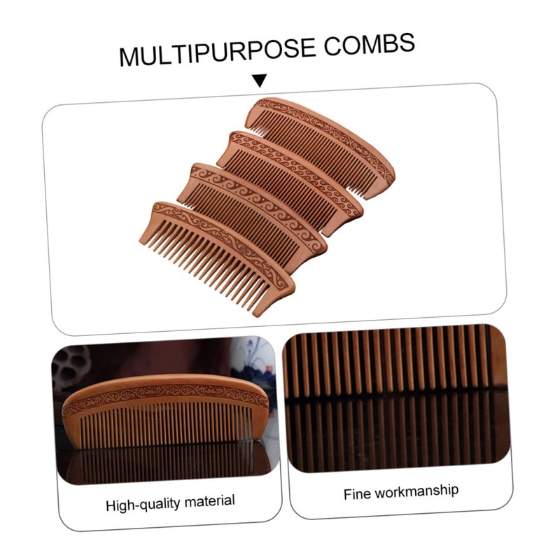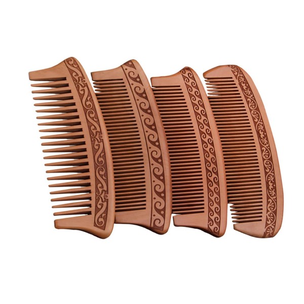 TOVINANNA 4pcs Portable Retro Wood Combs Wide Tooth Detangling Static Peach Hair Comb Random Style
